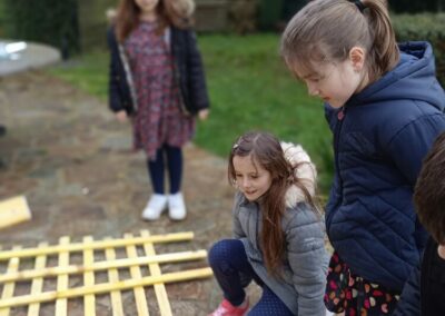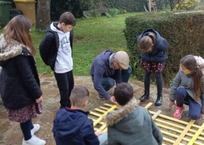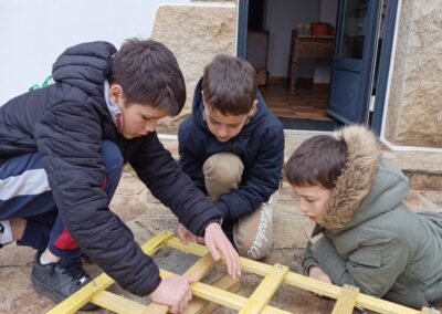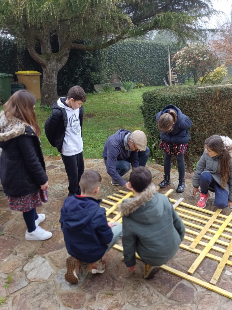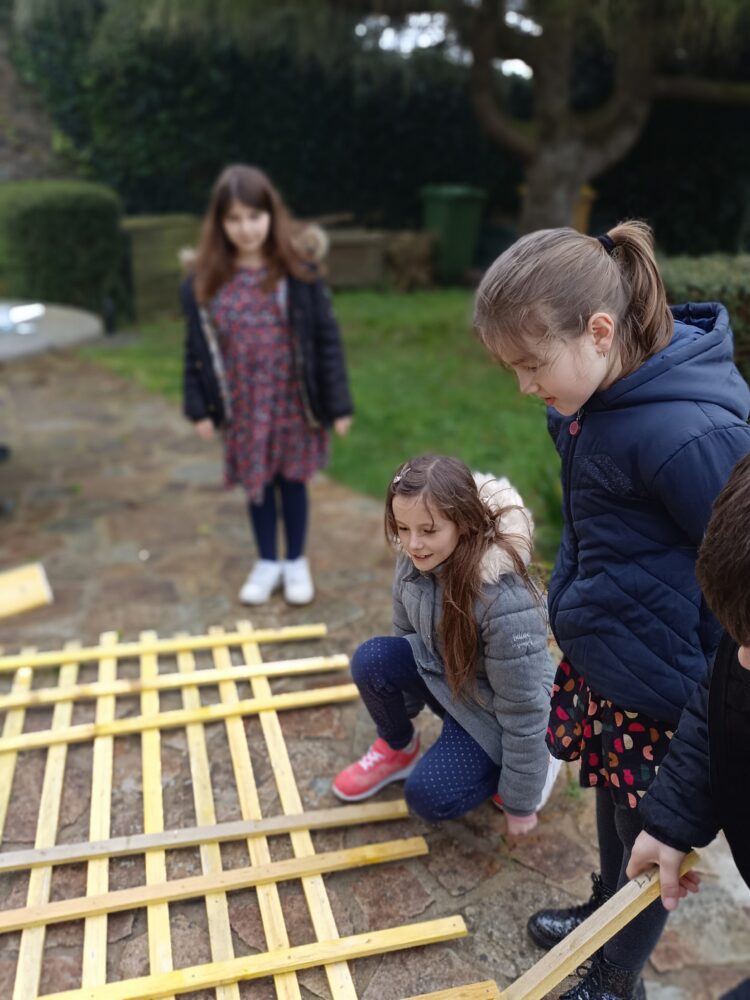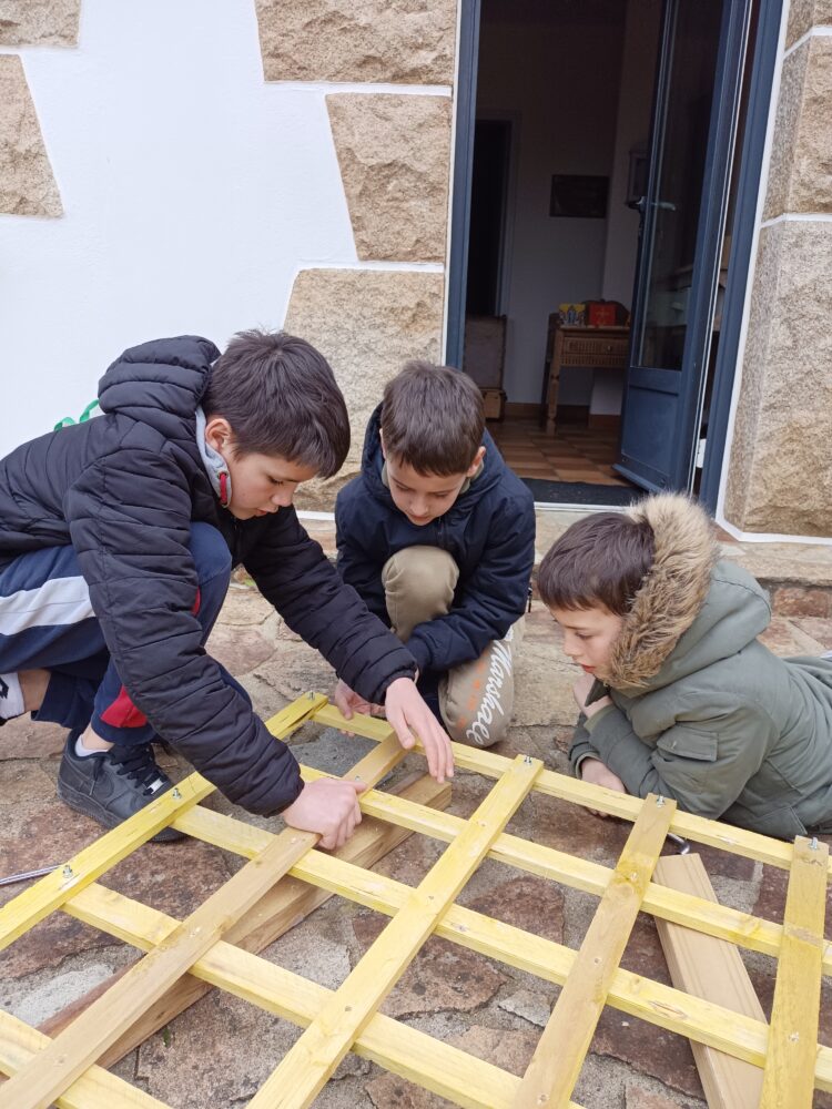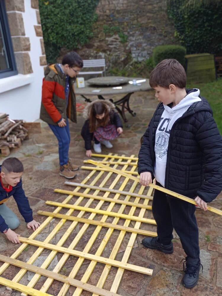Pendant ce temps, d’autres bâtisseurs se sont affairés à construire une herse de plus de 2 m de haut avec tasseaux de bois et près de 100 vis et écrous. Un travail d’équipe et en relais pour éprouver la persévérance et l’entraide de chacun !